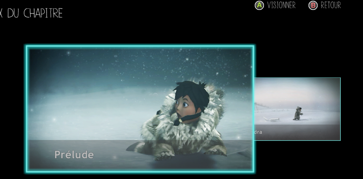 Il y a 13 chapitres dans Never Alone. Les deux premiers chapitres se font facilement en une séance d’environ 30 minutes. Le chapitre 3 « Village de Nuna » est plus long que les deux premiers avec deux passages plus délicats. Pour les enfants moins aguerris avec la manette il arrive régulièrement que le chapitre ne puisse être fait en une seule fois.